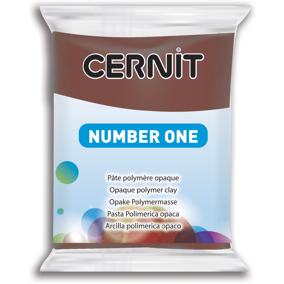 CERNIT - A Number one Polymer Clay Block - Baking Modelling Clay - Brown colour - 56 g block - CE0900056800C NUMBER ONE: cooking modelling clay (polymer), opaque after cooking and without any variation in colour the Number One range is suitable for all techniques, ideal for gradients or demarcations between several shades. COOKING THE DOUGH: once worked, cook the dough in a traditional oven, temperature between 110°C and 130°C for a maximum of 30 minutes, the dough has no odour when cooking, does not crack do not use a microwave oven. CHARACTERISTICS: Cernit dough does not dry, it is therefore infinitely malleable, after cooking, the dough is solid but remains flexible and workable after cooking it does not rub off neither on the hands nor on the tools, miscible colours. HOW TO USE: work the dough on a clean surface, knead the dough to make it flexible then start your creation, it can be sculpted, moulded or used with other materials, perfect for creating jewellery and models. MANUFACTURING: all Cernit cooking modelling clays are made in Belgium, near Liège, vegan composition.