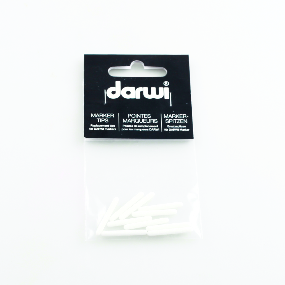 DARWI 10 Pointes de remplacement pour Marqueur de Peinture sur Céramique à Froid Pointe conique fine 2 mm Comment remplacer la pointe d'un marqueur à valve ? Toutes les pointes des marqueurs DARWI sont nettoyables et changeables. Pour cela, il suffit de retirer délicatement la pointe de l'embout, de la nettoyer à l'eau claire puis de la laisser sécher avant de la réintroduire ou d'utiliser une pointe de remplacement. Si après lavage de la pointe, le marqueur ne se réamorce pas correctement, la pointe est définivement endommagée et il faut la remplacer.