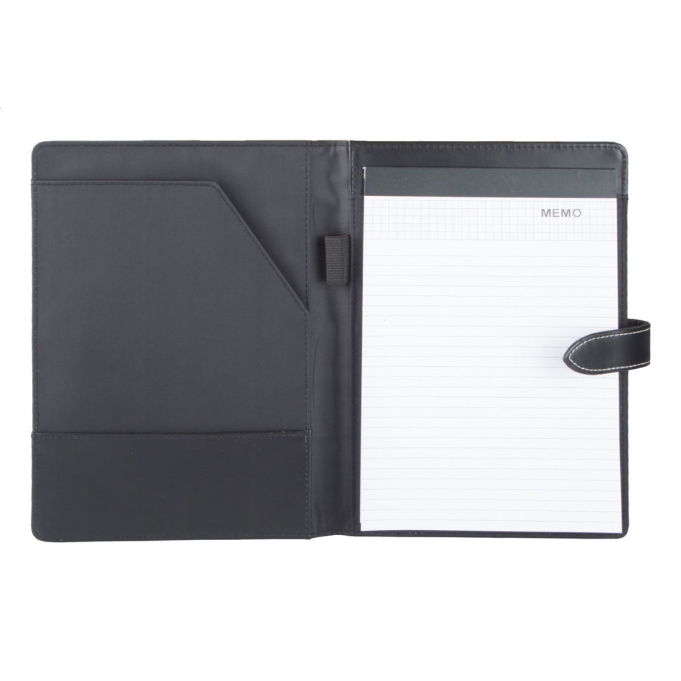 The Duotone A5 black document folder is a compact, professional solution for organizing notes and paperwork. Designed for everyday business and office use, it includes a convenient notepad with 20 lined sheets and a pen holder for on-the-go productivity.