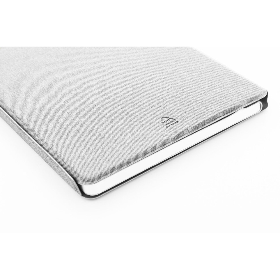 A4-sized grey document folder made from recycled PU leather, featuring inside organizer pockets, a magnetic closure, and a 20-page lined notepad made from recycled paper. Ideal for business meetings, document management, and professional presentations.