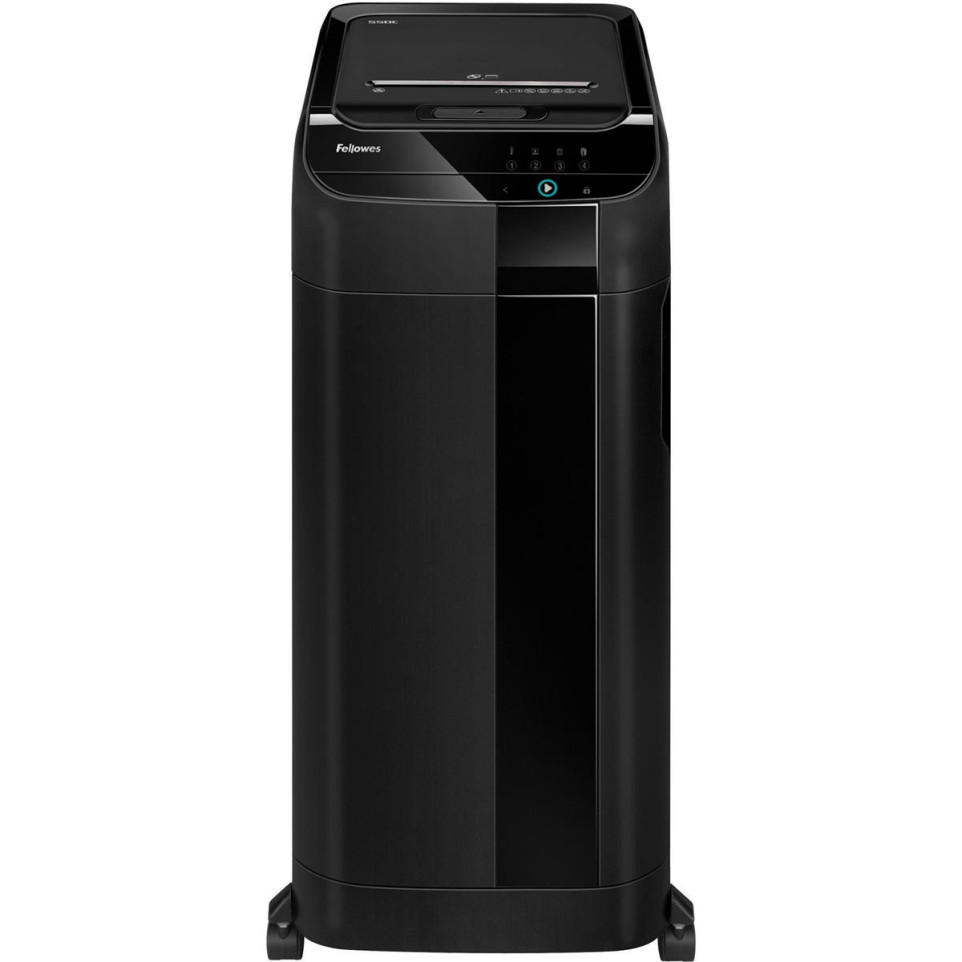 The Fellowes Automax 550C is a high-capacity, cross-cut document shredder designed for demanding office environments. It shreds up to 550 sheets automatically or 14 sheets manually, ensuring secure disposal of sensitive documents with efficient, quiet operation.