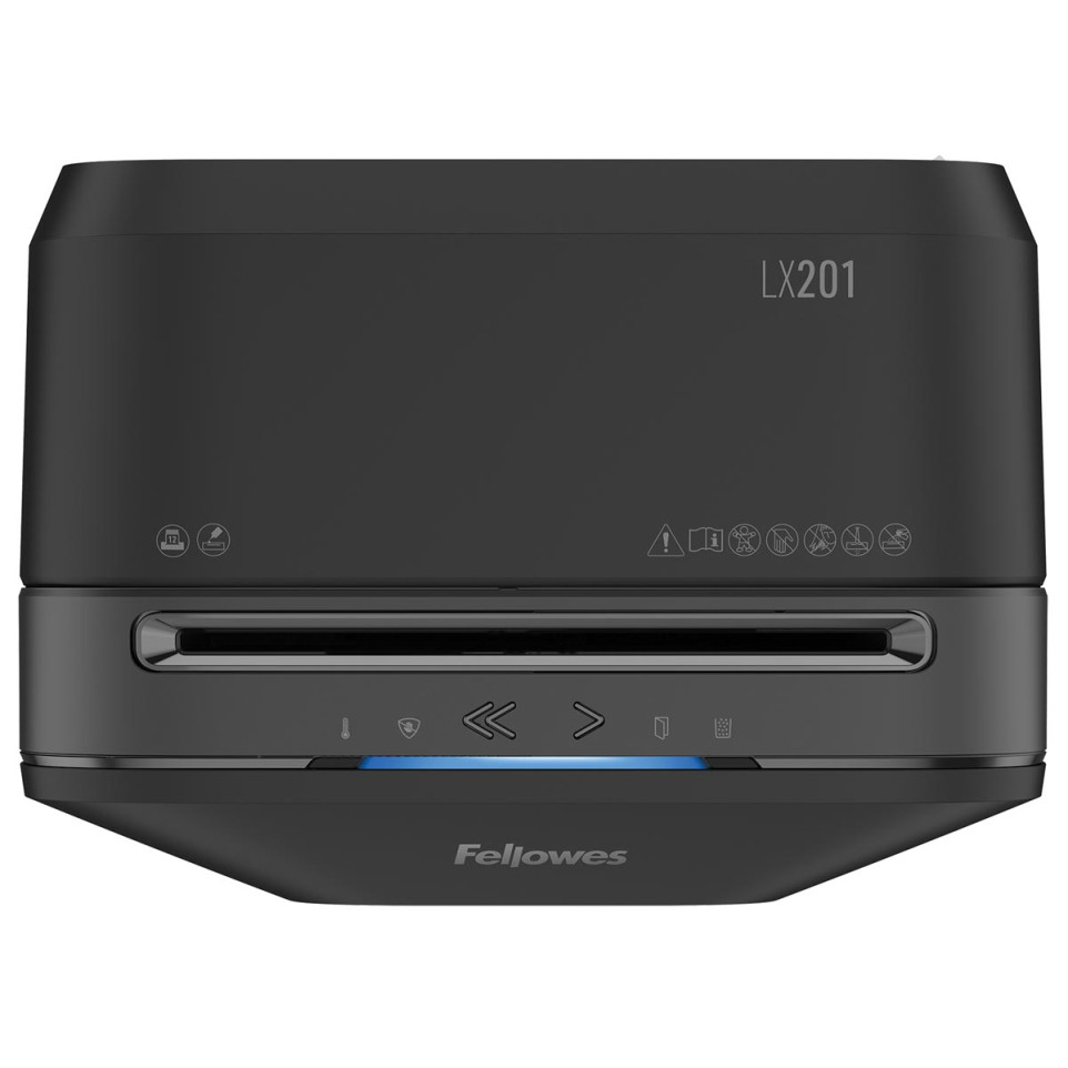 The Fellowes Microshred LX201 is designed for secure shredding of sensitive documents, credit cards, staples, and paper clips in home offices or small office environments.