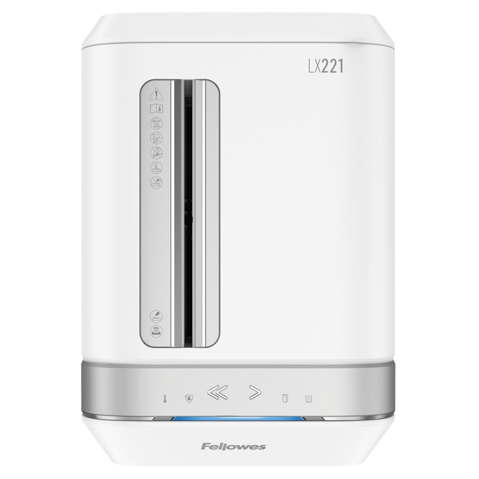 The Fellowes Microshred LX221 is designed for secure shredding of sensitive documents, credit cards, staples, and paper clips in home or small office environments for up to 3–5 users.