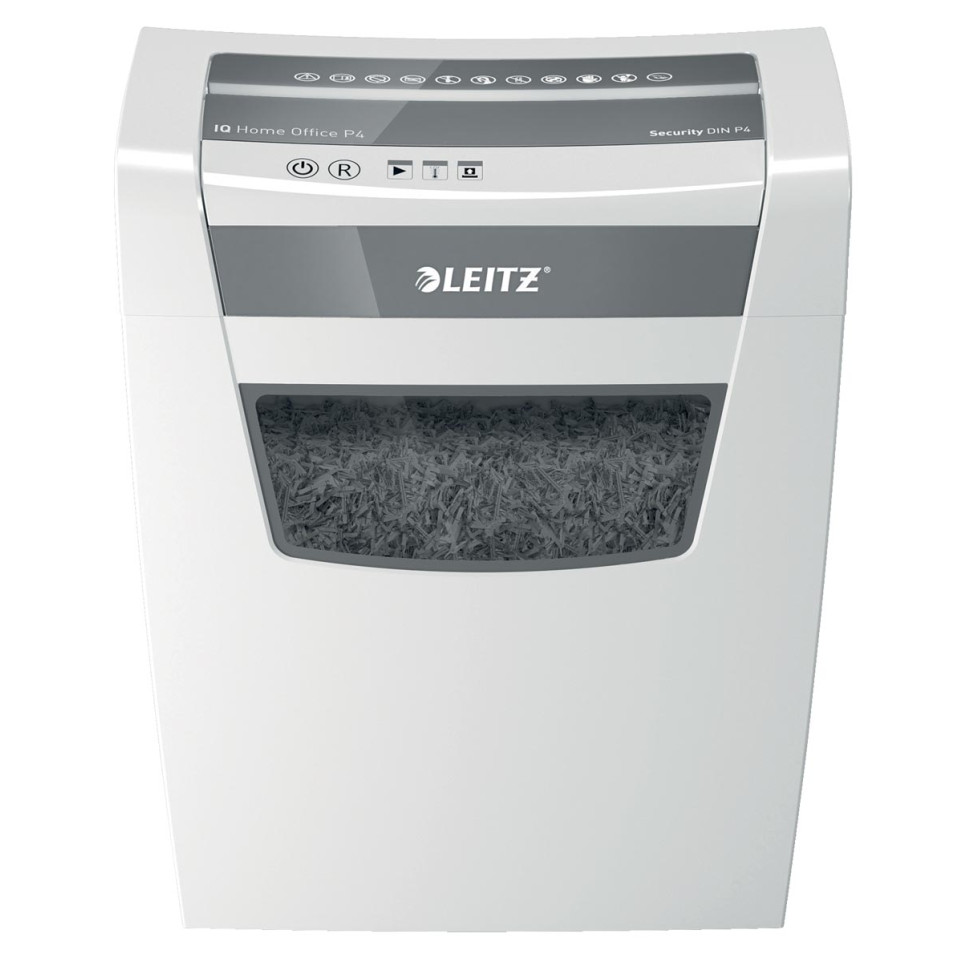 The Leitz IQ Home Office P4 is a compact cross-cut shredder designed for occasional document disposal in home or small office environments. It provides secure, efficient shredding with a simple, user-friendly interface.