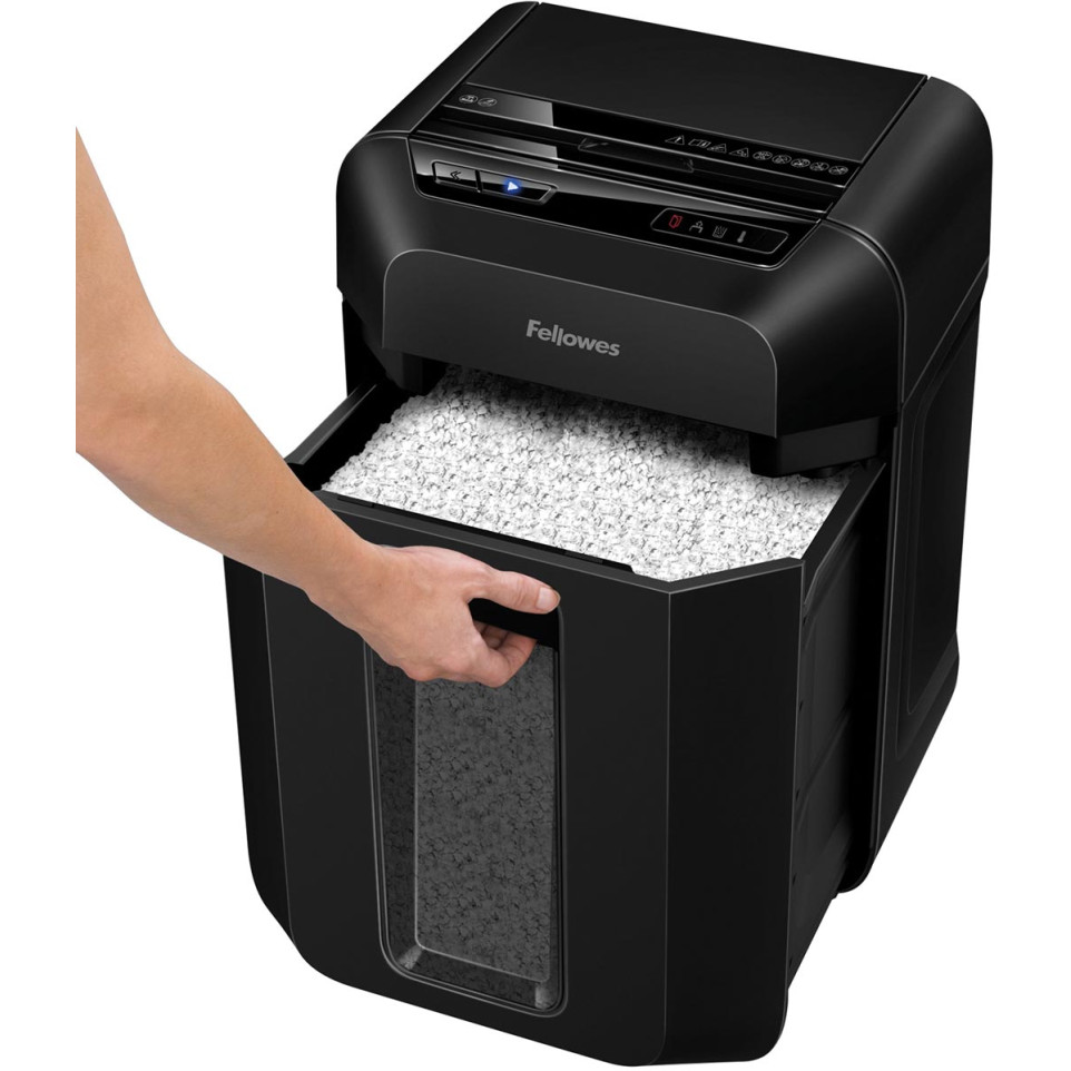 - Shreds paper, plastic credit cards, and small paper clips with ease.