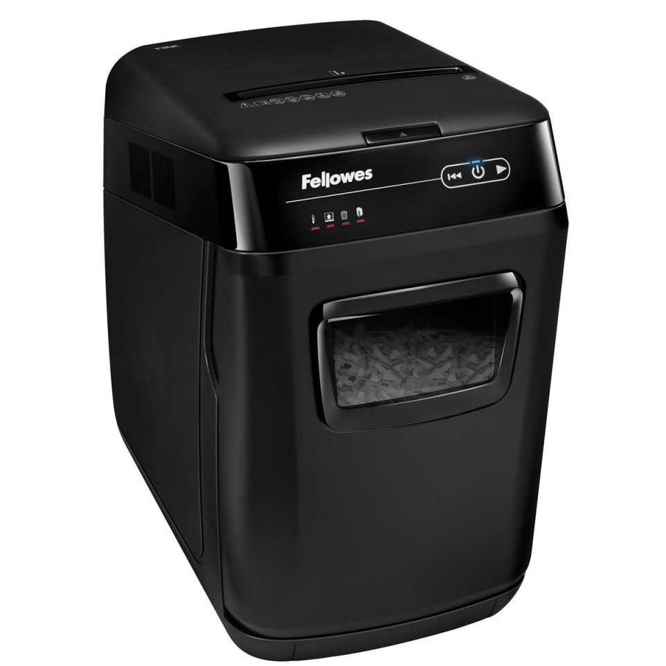The Fellowes Automax 130C is an automatic cross-cut document shredder designed for efficient and secure disposal of paper, credit cards, staples, and paper clips. Suitable for home offices and small workgroups, it offers hands-free shredding and simple operation.