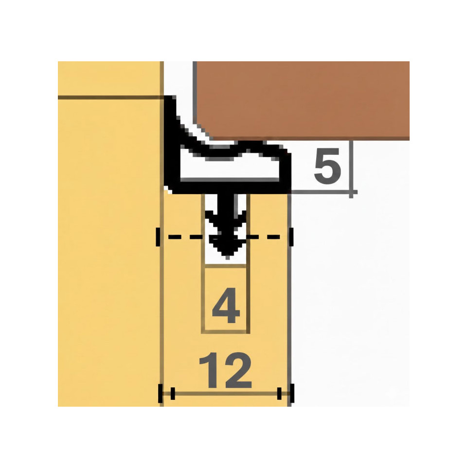 - Profile type: L-shaped strike seal (joint de frappe / battement) suited for wooden door frames and interior joinery