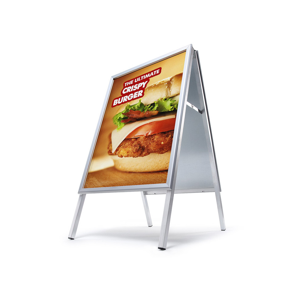 Double-sided A-Board with 32 mm mitred corners in A2 format, designed for high-visibility pavement advertising. Ideal for retail businesses, cafes, and event venues needing to capture attention outdoors and increase foot traffic.