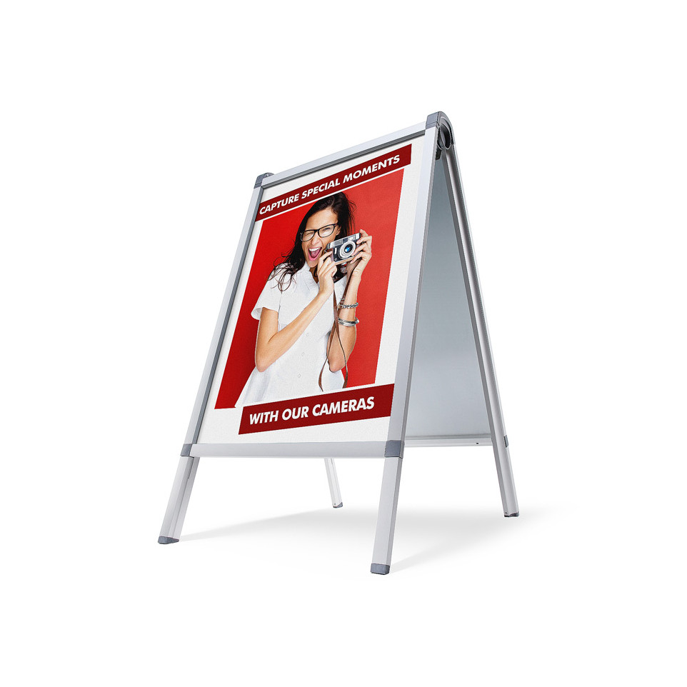 Design A-Board Prime Outdoor A1 is a double-sided pavement sign crafted for outdoor advertising and wayfinding. It provides a highly visible display surface for A1 posters, ideal for retail storefronts, restaurants, and event venues.