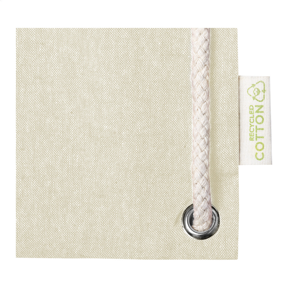 The bag is made from 100% recycled cotton with a density of 140 g/m².