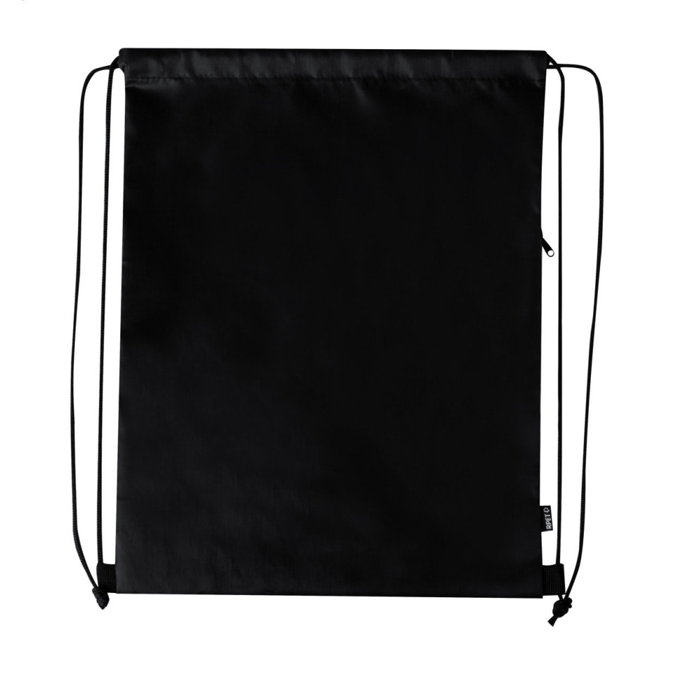 An eco-friendly drawstring bag featuring a convenient zipped side pocket, made from 210T RPET polyester (recycled PET bottles). Perfect for carrying gym essentials, casual items, or as a lightweight day bag.