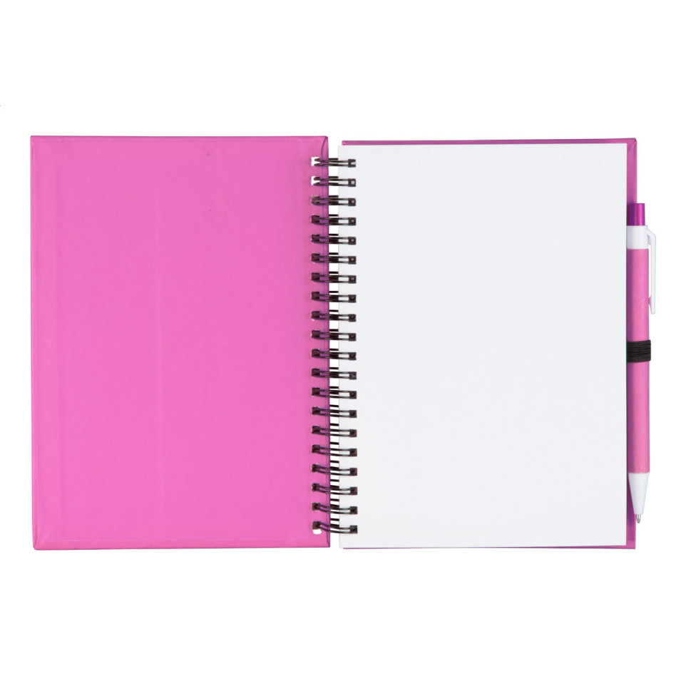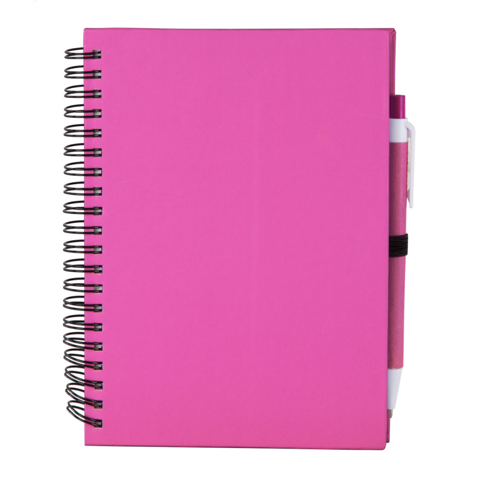 - Includes a recycled paper ballpoint pen in coordinating pink, with a blue 1 mm refill