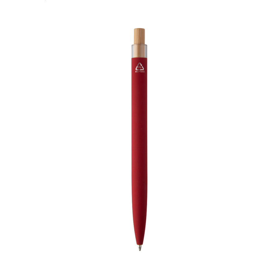 What makes this pen eco-friendly? The Boshly pen is made from recycled aluminum with a natural bamboo accent button, combining sustainability with professional aesthetics.