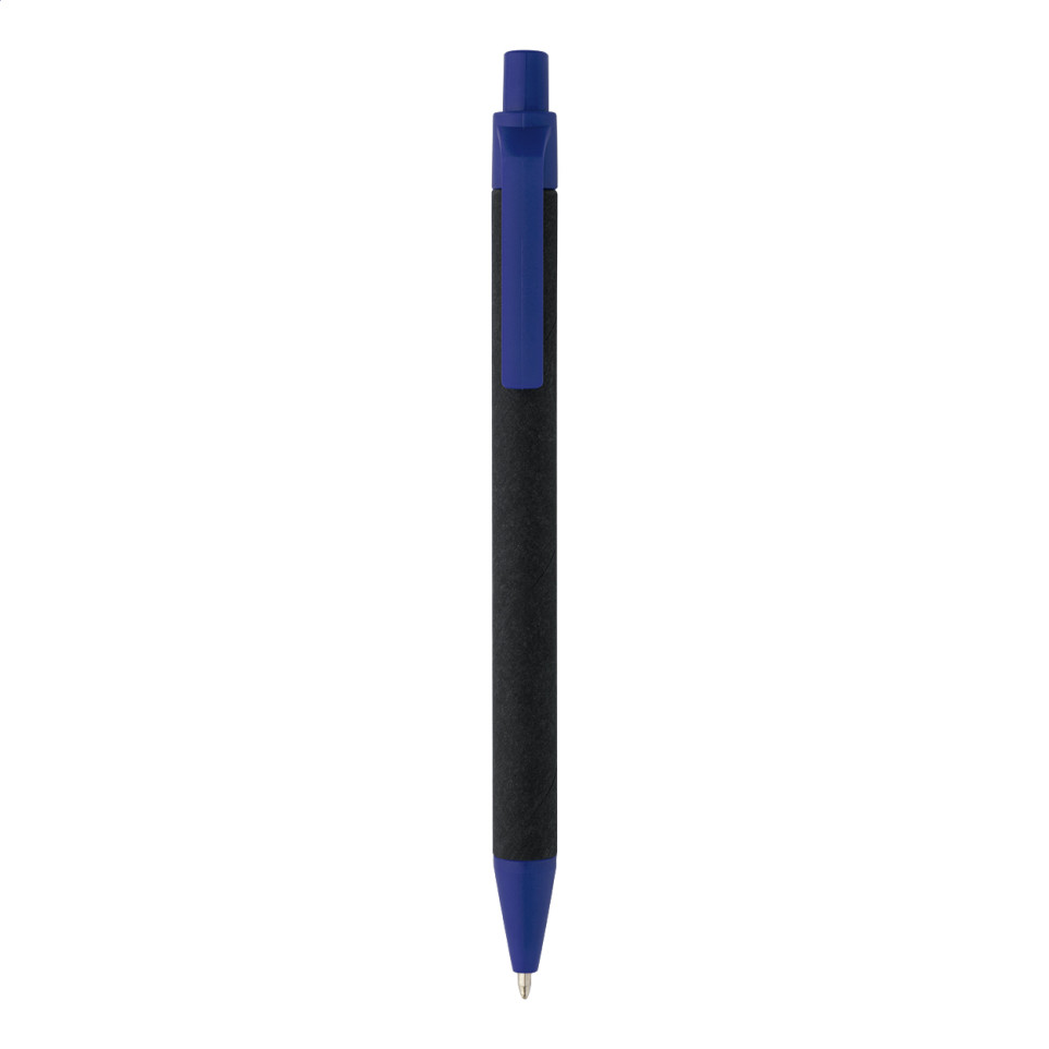 Recycled paper ballpoint pen with a sleek black body and blue refill, ideal for everyday writing, note-taking, or professional use in offices and events.