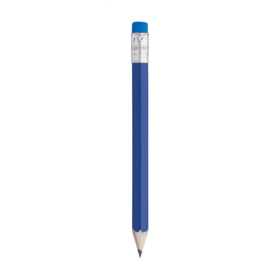 The Komin blue mini pencil (AP791382-06) is a compact wooden writing tool featuring an eraser on top. Perfectly sharpened and ready to use, this mini-sized pencil combines functionality with portability for quick notes, sketches, or creative tasks.