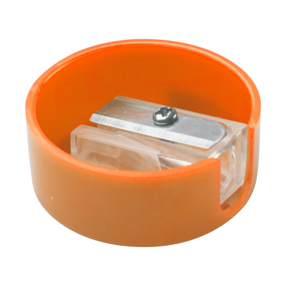 Spiked orange sharpener, reference AP809478-03, is a round-shaped, plastic pencil sharpener designed for everyday use in schools, offices, or creative workspaces.