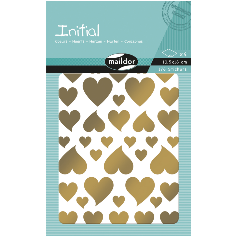 Initial, Bag 4 pl 10.5x16cm, Hearts, gold/silver The stickers develop your child's motor skills, dexterity and imagination. Gold and silver stickers for a shiny finish with the most beautiful effect. Initial Maildor stickers which give a festive air to all your creations (scrapbooking, decoration of books, notebooks, your diary, etc.). Dimensions of the board: 10.5x16 cm Dimensions of the pouch: 11.5x18.5 cm Number of stickers in the bag: 176 2 colours x 2 boards. Complies with CE Standards From 3 years old. Repositionable stickers: the stickers stick and peel off without damaging the page where you position them.