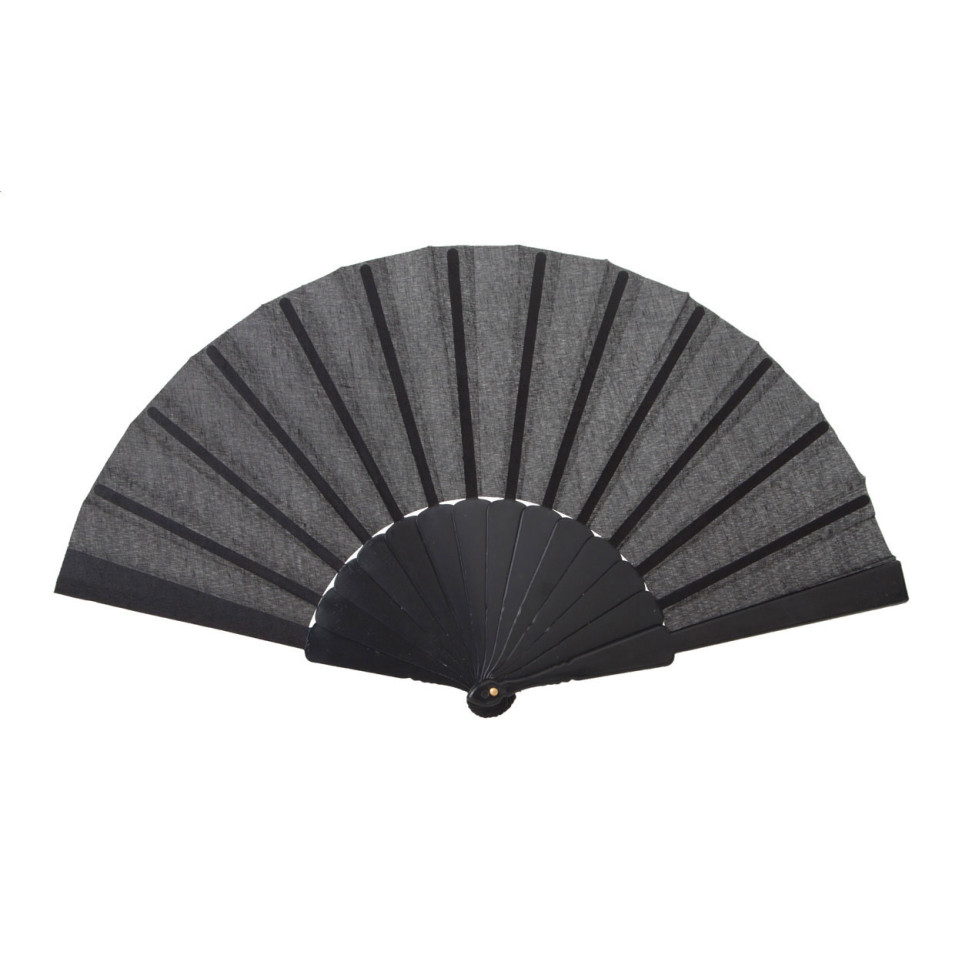 Costa black fan is a stylish textile hand fan with plastic ribs, perfect for staying cool during warm days. Lightweight and portable, it's an ideal accessory for outdoor events, summer gatherings, or promotional campaigns.