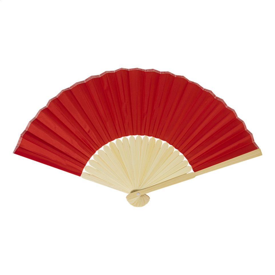 A lightweight hand fan crafted from RPET polyester with sturdy bamboo ribs, designed to provide a refreshing breeze while reflecting a commitment to sustainable materials.