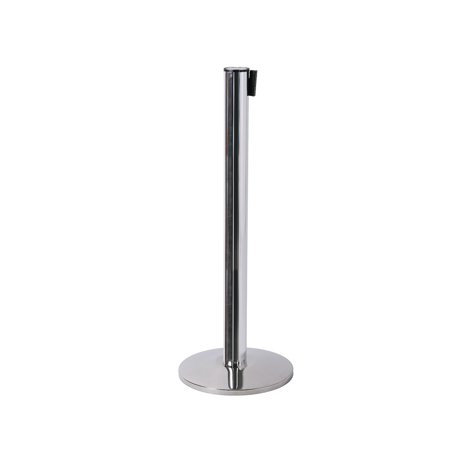 The Chrome Barrier Flexi Belt Post with 2.7 m black belt is perfect for managing queue flow in retail, hospitality, and transport environments.
