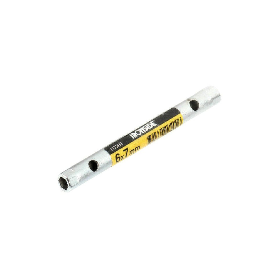 The Clé à tube droite Ironside 18x19mm is designed for tightening or loosening nuts and bolts in hard-to-reach places, thanks to its tubular design with openings on both ends.