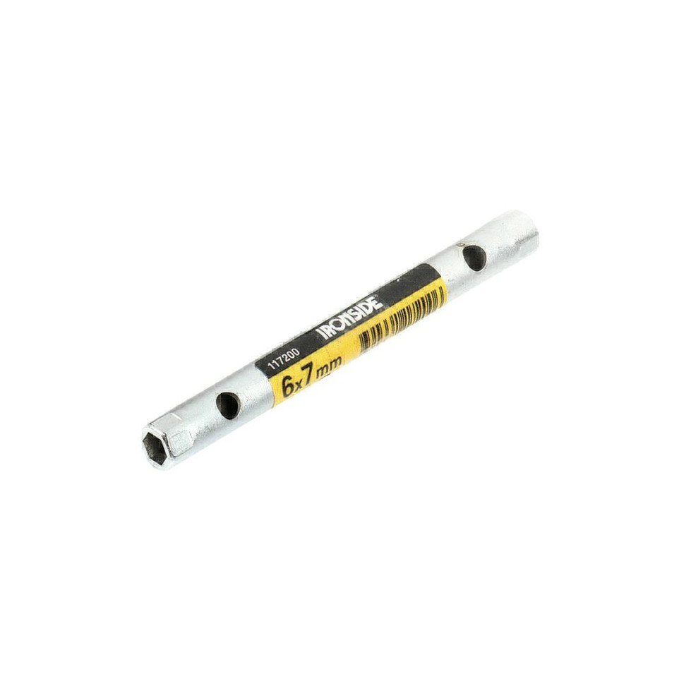 The Clé à tube droite Ironside 20x22mm is designed for tightening or loosening nuts and bolts in hard-to-reach recessed areas. Ideal for automotive, machinery repair, and maintenance tasks.