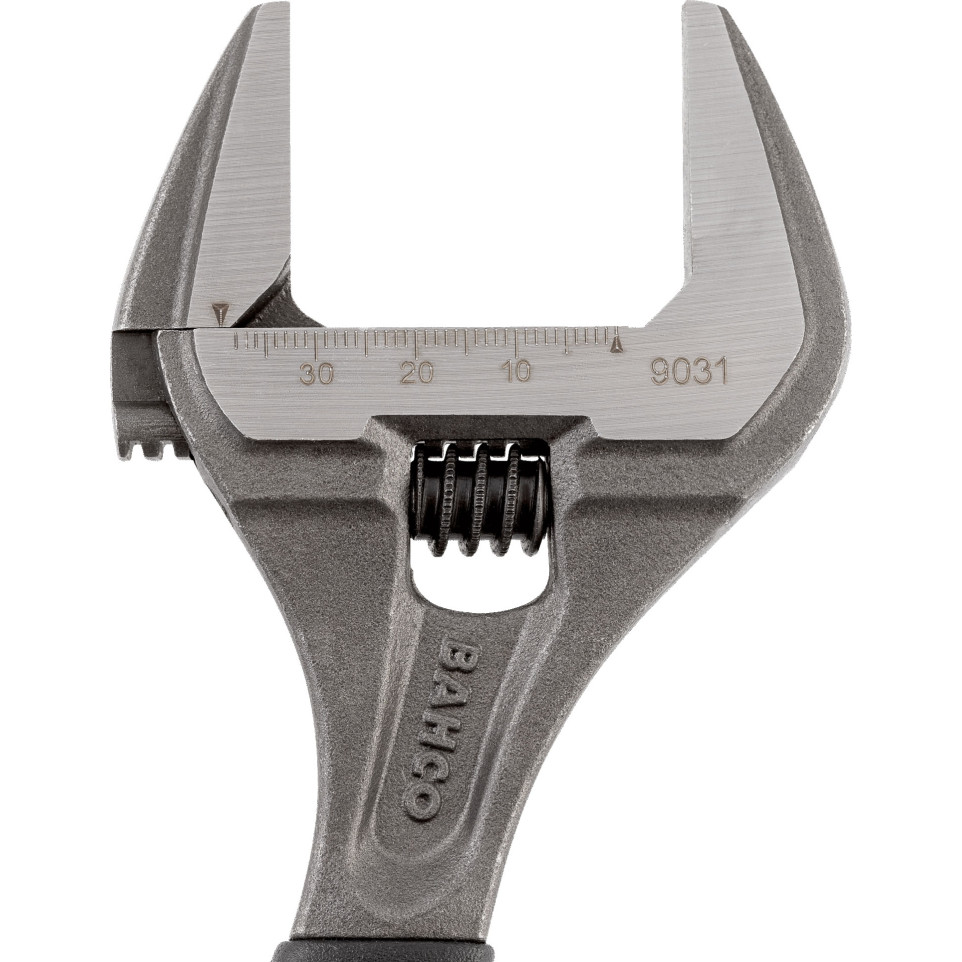 The Bahco 9031 adjustable wrench opens up to 38 mm, significantly wider than standard wrenches.