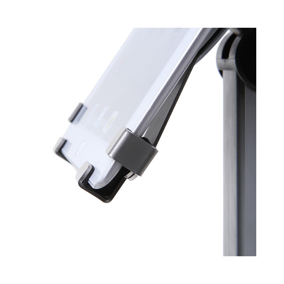 Place the stand on any flat surface and insert your tablet into the secure clamp. Adjust the height and angle as needed for presentations or customer interactions. Ideal for settings requiring accessible, hands-free digital displays while ensuring the device remains protected against unauthorized removal.