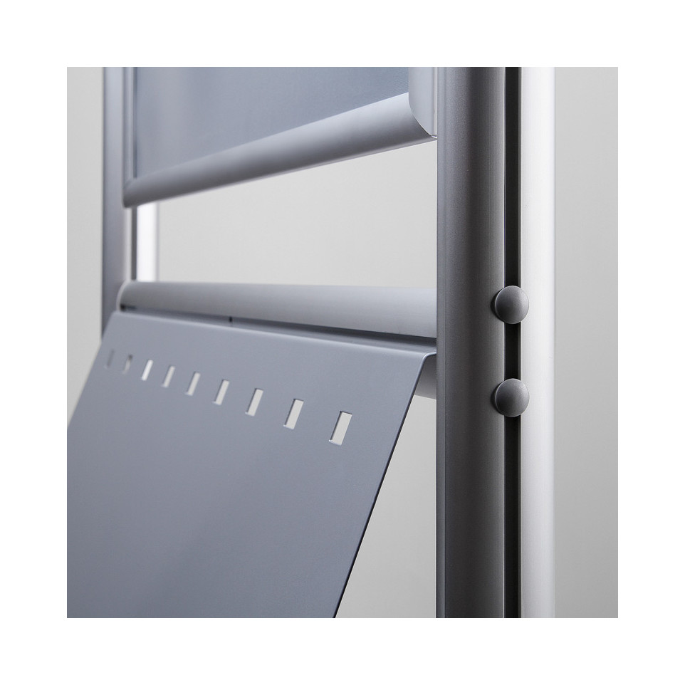 To use, simply open the snap-frame sides, insert or replace A1 posters, and snap the frame shut. The double-sided format enhances visibility, making it suitable for entrances, hallways, or retailer areas where information must reach viewers from both sides.