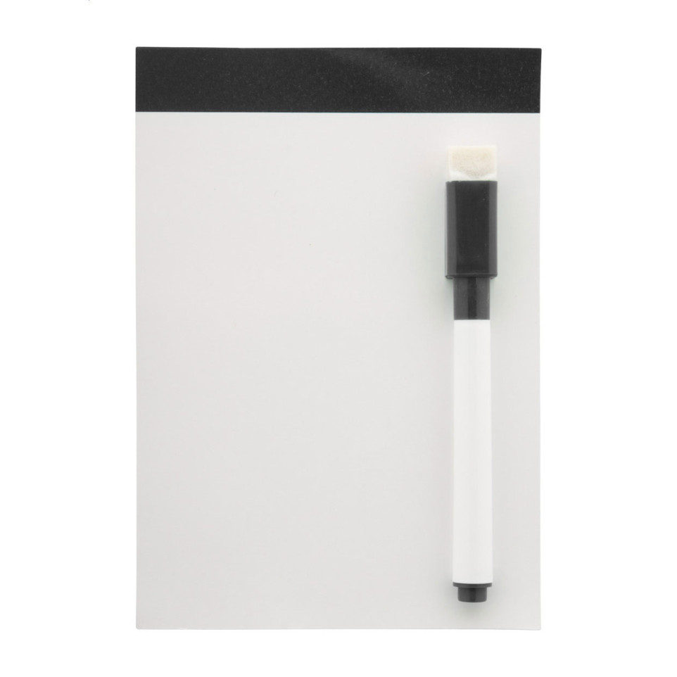 The Mafri black and white magnetic note board is a compact fridge magnet accessory, measuring 10.5 x 15 cm, supplied with a magnetic marker and integrated cleaner for jotting down reminders, messages, or quick notes at home or in the office.