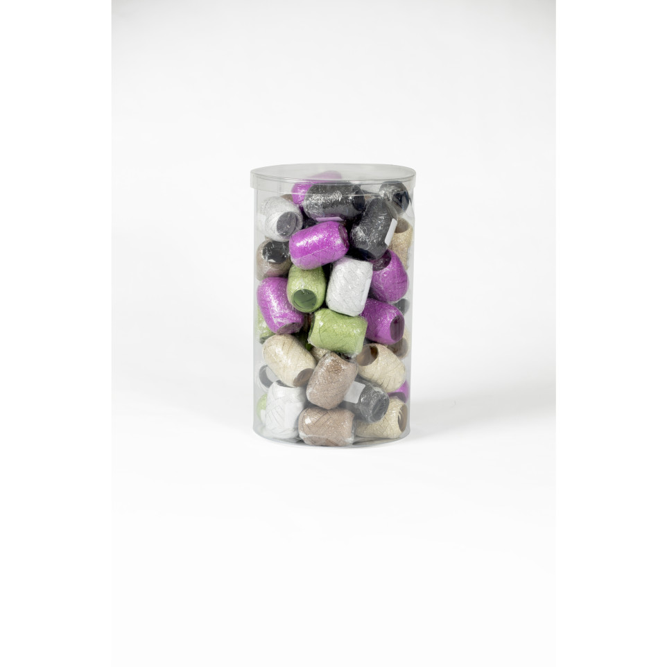 Mini-tube de 50 bolducs glitter assortis 10mx7mm De magnifiques rubans de couleurs assorties à associer à votre emballage cadeau. Le tube en plastique vous permet de conserver précieusement vos bolducs - Ils sont faciles à ranger et vous permettent de gérer votre stock sur le long terme. 6 couleurs assorties pour associer le bon ruban à l'emballage choisi. Fabriqué en France. Tubes de 60 bolducs
