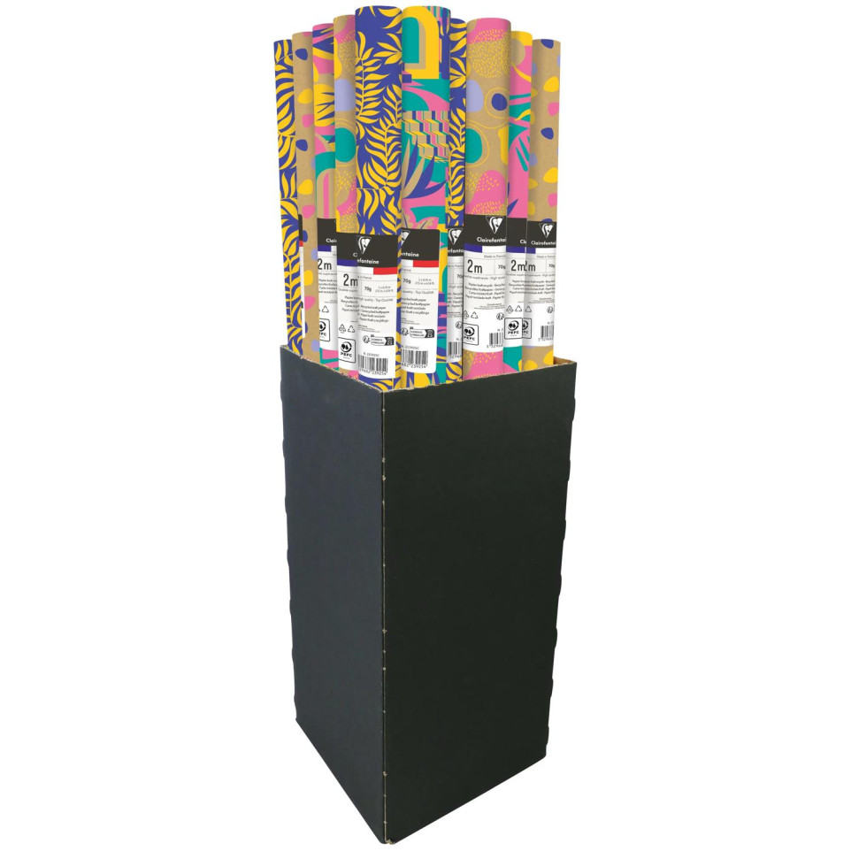 Raw kraft70g, Liwa 2x0,70m, in display of 30 rolls DESIGNS: Rolls of gift wrap paper with designs: Leaves, Oasis, abstract. Assorted rolls to wrap your most beautiful gifts. If you have several gifts to make, this is the ideal way to match them in an original way. SIZE: 2m x 0.70m. Kraft paper, grammage: 70g. Longer length for more packaging. ALL OCCASIONS: Gift wrapping paper for all occasions: birthdays, anniversaries, Mother's Day, Father's Day or the festive season. Ex perience the pleasure of giving with our gift wrap rolls. SUPERIOR QUALITY: Clairefontaine paper is of the highest quality. It is strong during packaging and resistant to handling. The kraft range guarantees you the best value for money while maintaining high quality. MADE IN FRANCE: Clairefontaine paper is made in France at our factory in the Auvergne Rhône Alpes region.
