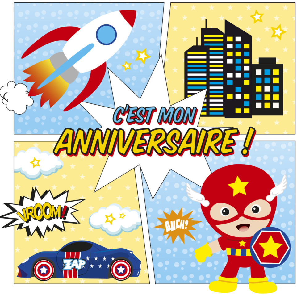 SET INVITATION ANNIVERSAIRE, 8 cartes simples 116x116 + 8 enveloppes 120x120 - Super héros Un indispensable pour inviter ses amis à son anniversaire ! Ces jolies cartes feront plaisir à ceux qui la reçoivent et ceux qui l'envoient... Ce set contient : 8 cartes simples au format 11,6x11,6cm sur un papier dessin 200g/m2 et 8 enveloppes jaune soleil au format 12x12cm.