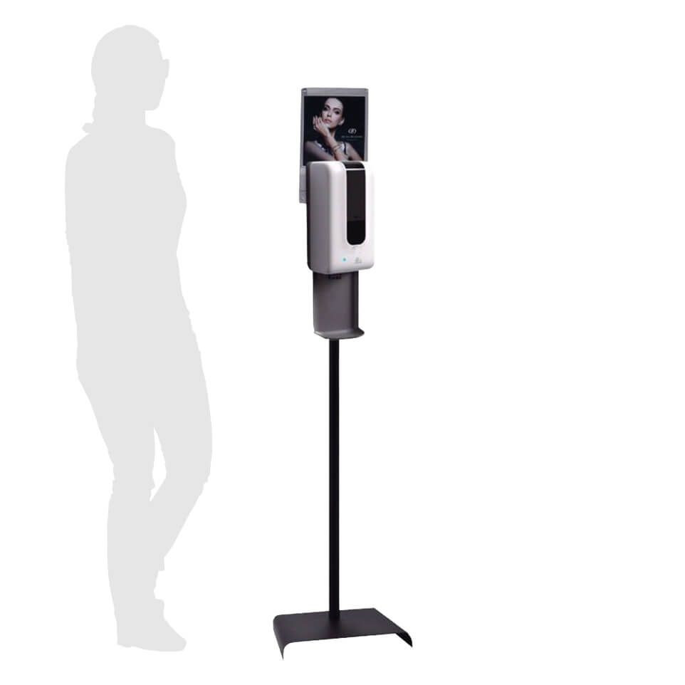 A5. Mobile, self-powered design: With 4 AA batteries supplying up to 30,000 doses, the freestanding unit requires no wiring, is easy to reposition, and fits seamlessly into existing layouts without installation work.