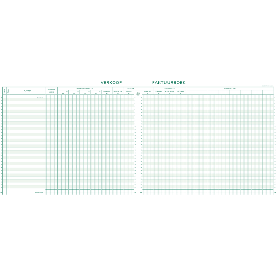 Piqûre TVA Sorties - texte NL - 31 lignes - avec feuille d'identification Les entreprises [belges ou étrangères] qui développent une activité économique sur le territoire belge sont tenues de respecter un certain nombre d obligations TVA. Les entreprises doivent tenir une comptabilité appropriée à l étendue de leurs activités en vue de permettre l application et le contrôle de la TVA. La comptabilité doit notamment détenir un facturier d entrée [dans lequel elles inscrivent les livraisons de biens et les prestations de services, les importations, les acquisitions intracommunautaires de biens, etc.], un facturier de sortie [dans lequel elles inscrivent les factures de ventes, les transferts de biens et les documents correctifs qui s y rapportent] et, le cas échéant, un journal des recettes. La clarté des tracés Exacompta et leur qualité d'impression avec une encre verte spéciale sont reconnues et appréciées depuis des années. Le Papier 110 g/m2 est légèrement teinté, spécialement étudié pour reposer la vue, et mat pour une écriture facile et nette Il est certifié FSC, un mode de gestion responsable des forêts. La couverture en carte lustrée est issue de nos papeteries Clairefontaine, elle est noble, rigide, résistante et écologique car également certifiée FSC. Les piqûres et registres Exacompta sont fabriqués à 100% en France.