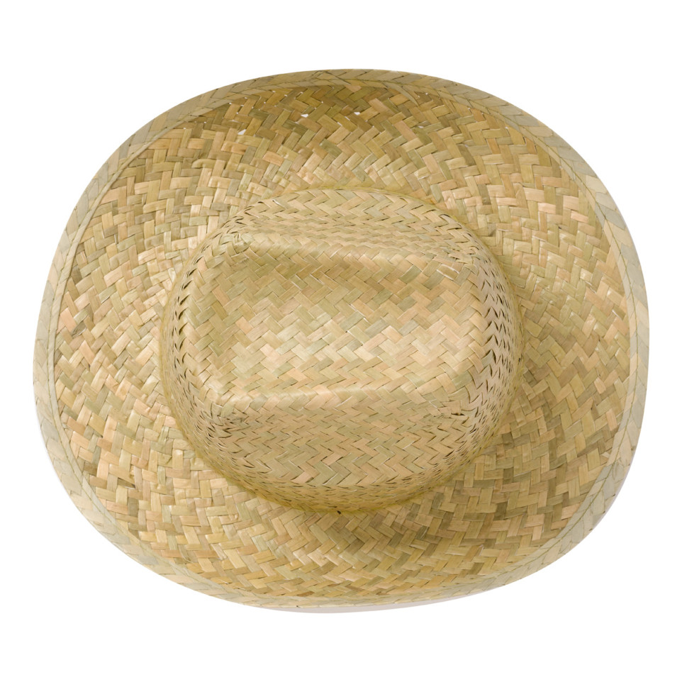 A stylish green straw hat designed for all genders. This casual, bandless headwear offers protection from the sun with natural materials and classic appeal.