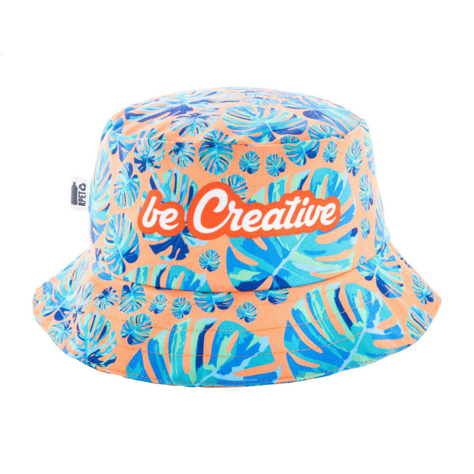 The SuboHat is a custom RPET bucket hat designed for all occasions, featuring all-over sublimation printed graphics. It is available in multiple sizes: S (55cm), M (58cm), and L (60cm).