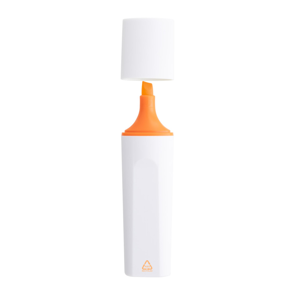 The Rabomark orange white RABS highlighter is a practical writing tool made from recycled materials, featuring a vibrant orange ink and a clean white casing. Perfect for students, office workers, and anyone needing to emphasize important text.