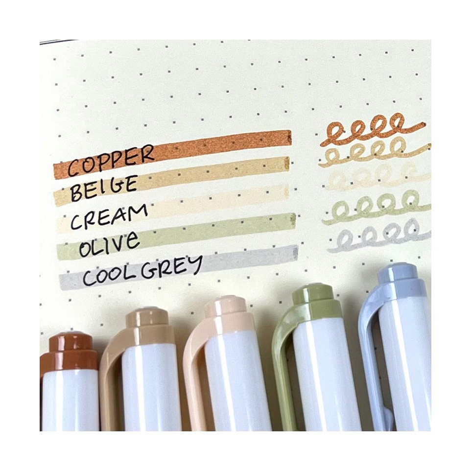 The ZEBRA MILDLINER Double-Ended Highlighter Neutral Set includes five soft-toned markers designed for highlighting, writing, and drawing. Their gentle neutral colors enhance notes, planners, and creative projects without overwhelming the page.