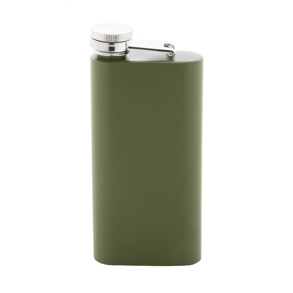 The Cabot green RSS hip flask is a compact and practical flask crafted from recycled stainless steel with a sleek matte finish, ideal for carrying up to 150 ml of your preferred beverage securely and discreetly.