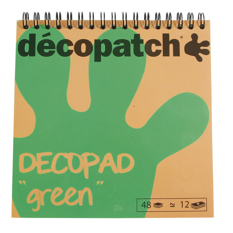 Decopad Colour Block in Green MULTI-SURFACES PAPER: Décopatch paper perfectly conforms to the shape of all objects, whether flat or irregular, and adheres to a variety of materials such as paper mâché, wood, plastic, iron, glass, polystyrene, metal, clay, ceramic, cork, and more. PERFECT FINISH: Very easy to apply due to its thinness and its resistance once glued, Décopatch paper is the only paper that provides a smooth appearance and the illusion of a painted finish to your creations! ECO-FRIENDLY: Décopatch allows you to breathe new life into old furniture, modernize thrift store finds, and create unique items for events like birthdays and weddings. SIMPLE TECHNIQUE: The Décopatch technique is suitable for both children over 5 years old and adults. Step 1: Tear or cut some pieces of Décopatch paper, approximately 2x2 cm in size. Step 2: Apply PaperPatch glue (not included) to the surface you want to decorate. Step 3: Place a piece of paper on the glued area and add a second layer of glue on top. Step 4: Repeat the process, overlapping the paper pieces until the object is completely or partially covered. A PAPER FOR ALL GENERATIONS: Children aged 5 and above or adults, beginners or experienced, the Décopatch technique is suitable for all ages and skill levels! Made in France: Décopatch is a French brand owned by the Clairefontaine Rhodia Group. We offer high-quality products for customization, decoration, and creative hobbies.