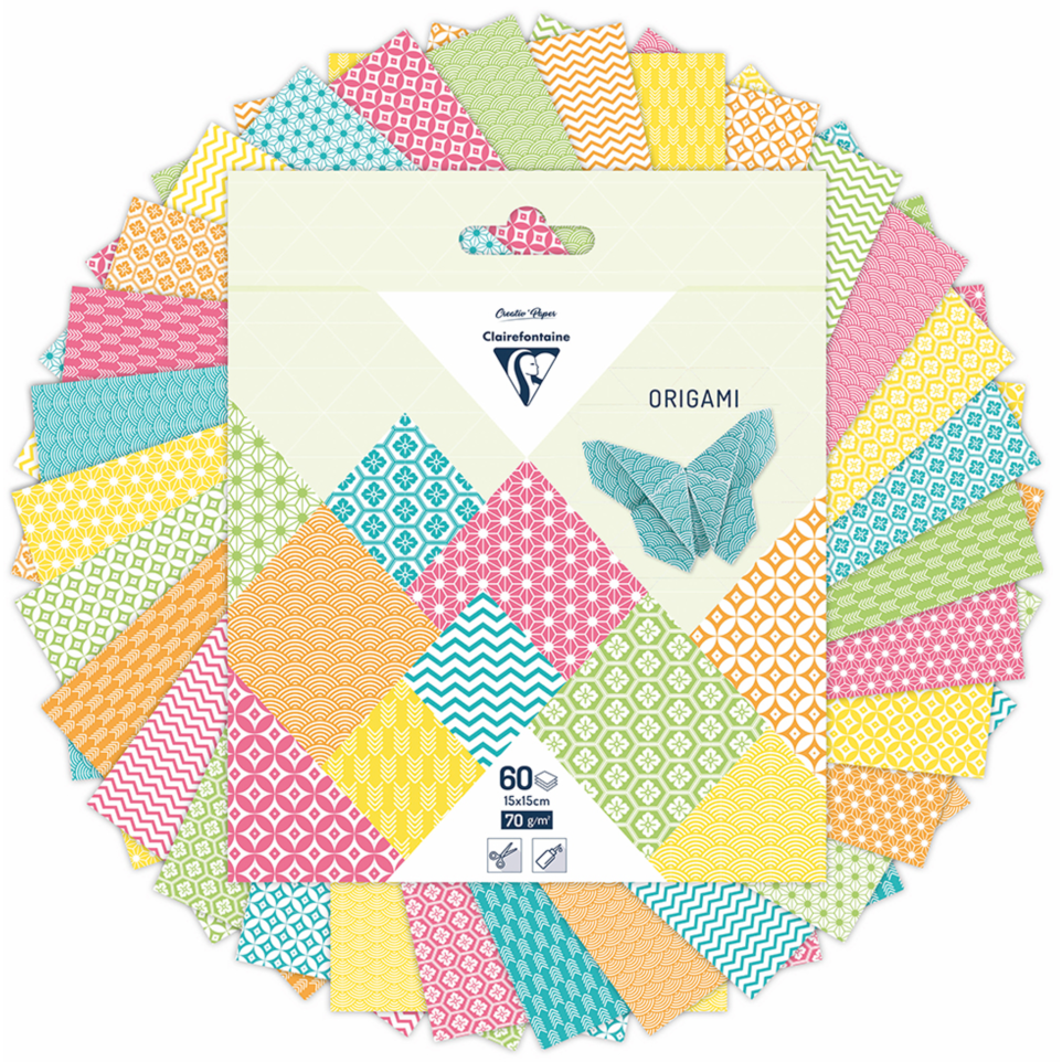 ORIGAMI, Pochette de 60 feuilles 70g/m2 au format 15x15cm - Eté Super pratique ! Une multitude de motifs thématiques sont réunis dans une seule et même pochette. Originaire du Japon, l'origami est l'art du pliage de papier. Ludique et accessible à tous, débutants comme initiés, l'origami peut prendre des formes aussi simples que complexes : animaux, fleurs, objets décoratifs, ... sans découpage ni collage. Un grain d'imagination et d'habilité suffisent pour donner libre cours à la créativité. Cette pochette contient un assortiment de 60 feuilles imprimées (motif au recto / couleur unie au verso) sur un papier 70g/m2 au format 15x15cm. Les 30 motifs sont répétés 2 fois.