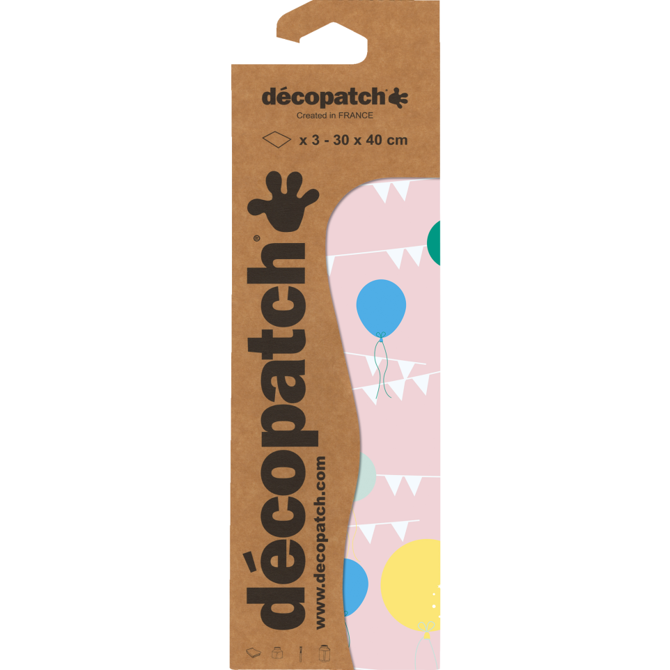 Decopatch Sheets x3 Ref.905 Décopatch paper perfectly moulds to the shape of all objects (flat or irregular) and on all materials (papier-mâché, wood, plastic, iron, glass, polystyrene, metal, terracotta, ceramic, cork, etc.). Very easy to apply thanks to its smoothness and its resistance once glued, Décopatch paper is the only paper to give a smooth appearance and gives the illusion of painting to your creations! Décopatch allows you to give life to an old piece of furniture, to modernise old treasures, to create an original object for a birthday, a wedding. Simple Technique, tear or cut out a few pieces of Décopatch paper of approximately 2x2 cm - Apply the PaperPatch varnish-glue (not supplied) to the surface to be decorated. Lay a piece of paper on the glued surface and put a second coat of glue over it. Repeat by overlapping the pieces of paper until the object is completely or partially covered.