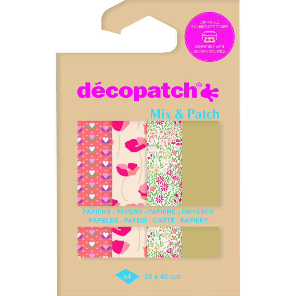 Mix & Patch - Love is in the meadow ASSORTMENT OF 4 SHEETS: The pouch contains 4 assorted Décopatch sheets of 30x40 cm each. 4 different and colourful patterns for all your customizations (including 2 papers with foil effect)! MULTI-SURFACE PAPER: Décopatch paper perfectly matches the shape of all objects (flat or irregular) and on all materials (papier maché, wood, plastic, iron, glass, polystyrene, metal, terracotta, ceramic, cork, etc.) . PERFECT FINISH: Very easy to apply thanks to its strength once glued, Décopatch paper is the only paper to give a smooth appearance and the illusion of painting to your creations! ECOLOGICAL: Décopatch papers allow you to personalize your creations and bring new life to your old-fashioned, damaged or faded objects, no more waste: we no longer throw away, we renovate (while having fun)! CREATED IN FRANCE: Decopatch is a French brand belonging to the Clairefontaine Rhodia group, and located near Lyon. The Decopatch paper is designed and then printed in France.