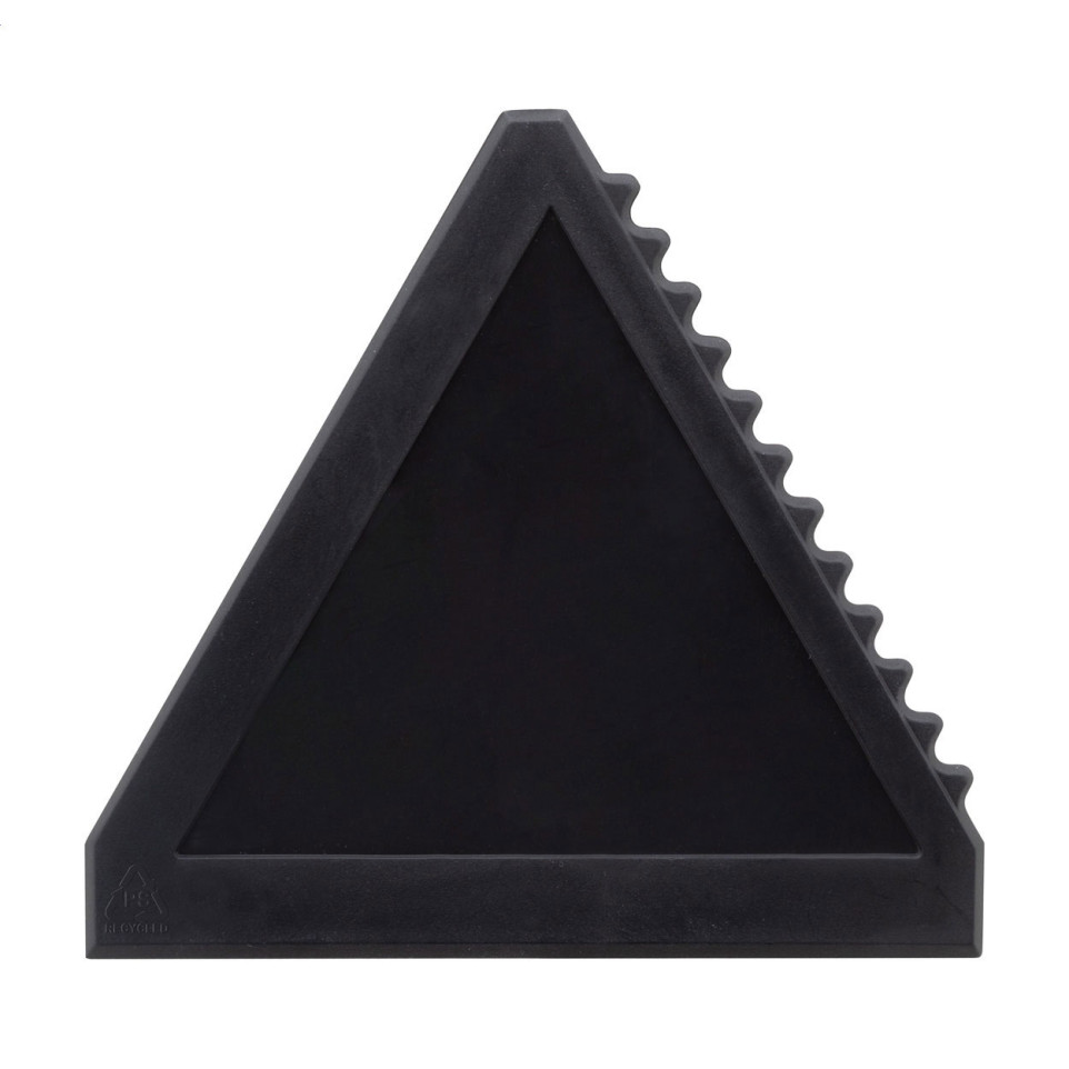 TriScrap is a triangular-shaped windshield ice scraper made from recycled PS plastic, offering an effective solution for clearing ice from vehicle windows during winter months.