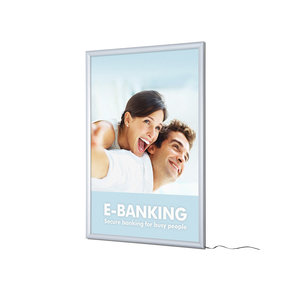 To use, mount the frame onto the wall with included hardware, connect to power, and insert your graphic by snapping open the frame sides. The LEDs provide bright, uniform lighting, highlighting your message while minimizing energy usage. Ideal for retail promotions, menus, event notices, or corporate communications.