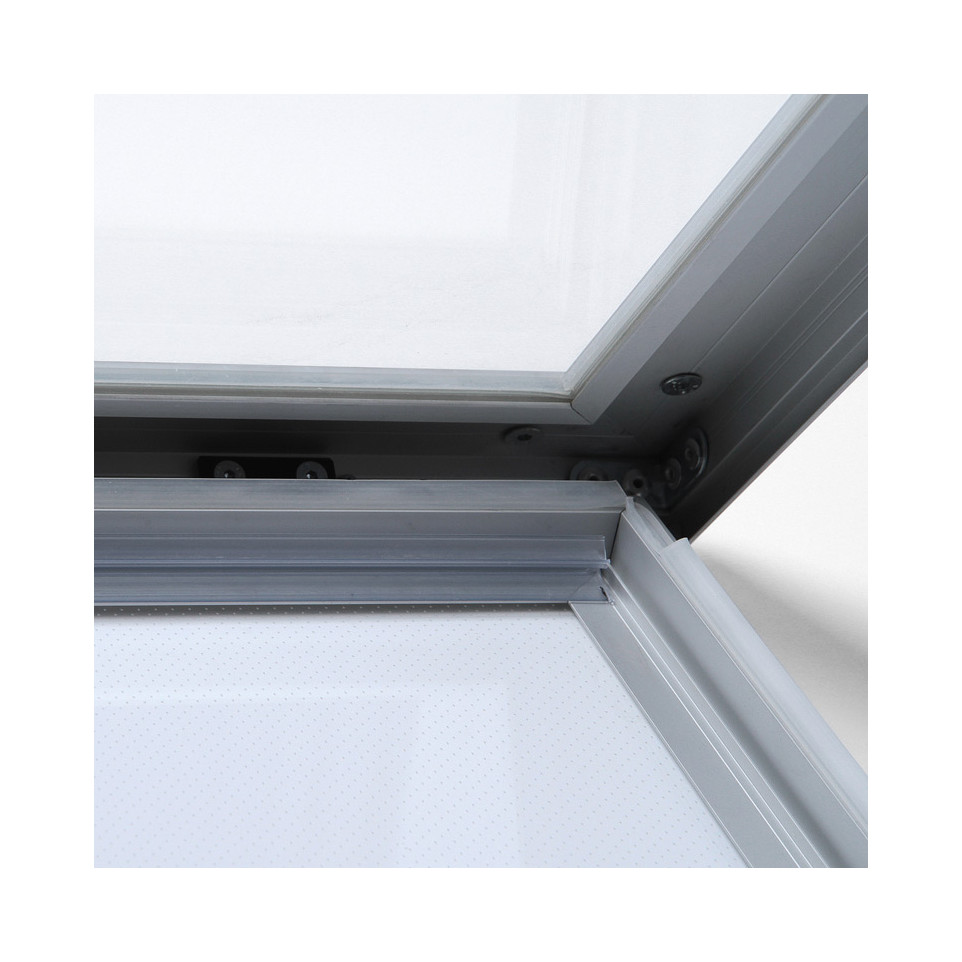The snap system and hinged door allow quick, convenient poster replacements without extra tools.