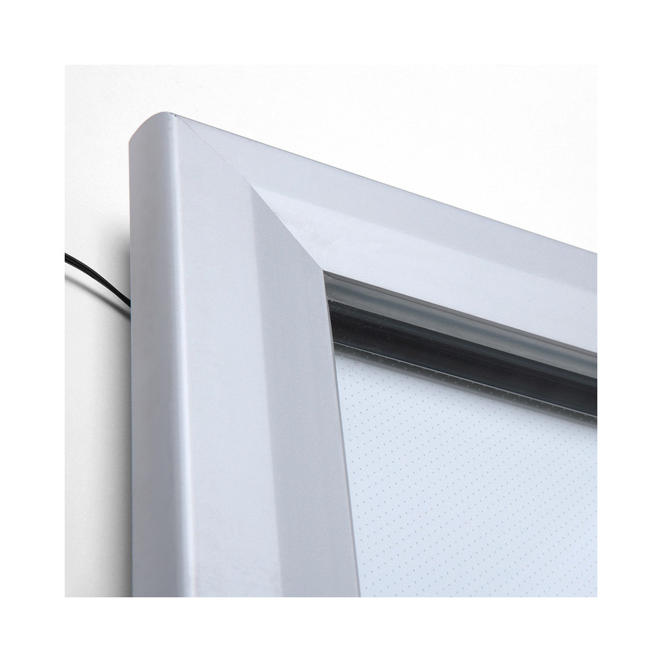 Open the lockable safety glass door to insert or switch out posters using the snap system, then secure and illuminate your display with the integrated LEDs. The case connects to mains power, providing bright visibility and secure protection against outdoor elements in all weather conditions.