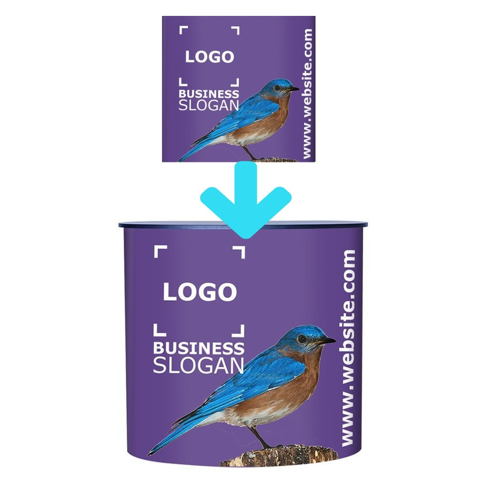 A5. Lightweight and easy to store: Weighing only 0.8 kg and packing into a compact 94 x 12 cm roll, Image for Desk L is simple to transport, store between events, and reuse without taking up valuable backroom space.