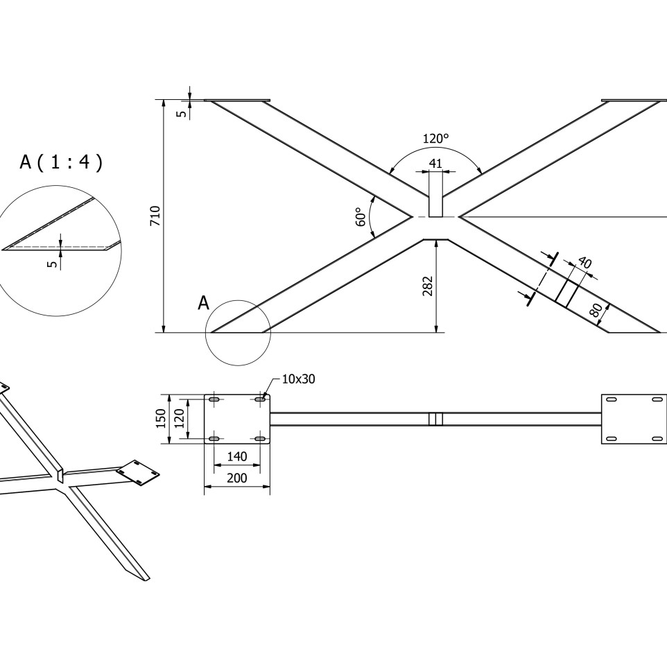 - Main Measurements: Height: 710 mm; Width: 780 mm; Profile Section: 80x40 mm rectangle.